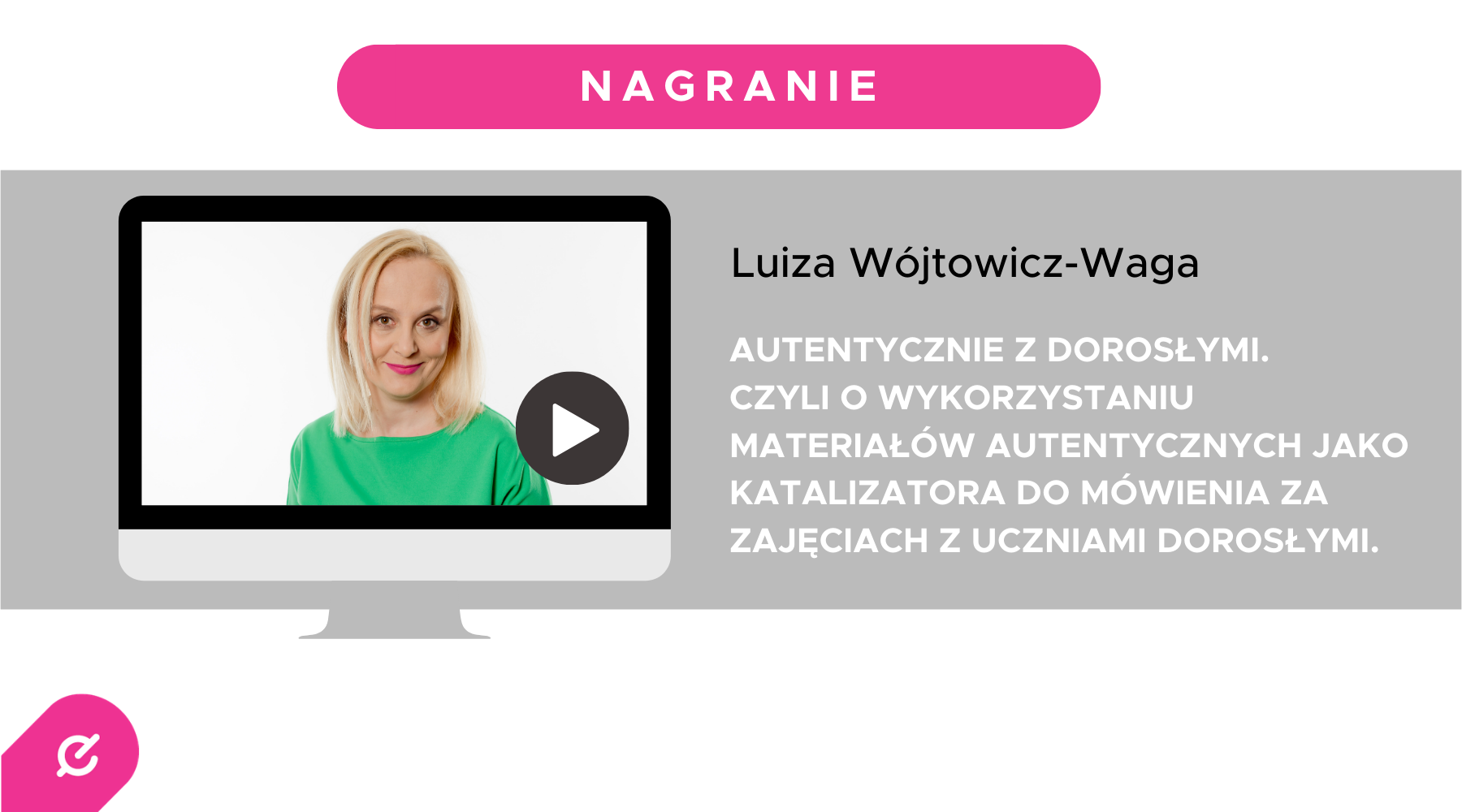 Autentycznie z dorosłymi by edunationPosted on 12 listopada, 202012 listopada, 2020 Obejrzyj nagranie webinarium z Luizą Wójtowicz-Wagą o wykorzystaniu materiałów autentycznych jako katalizatora do mówienia za zajęciach z uczniami dorosłymi.