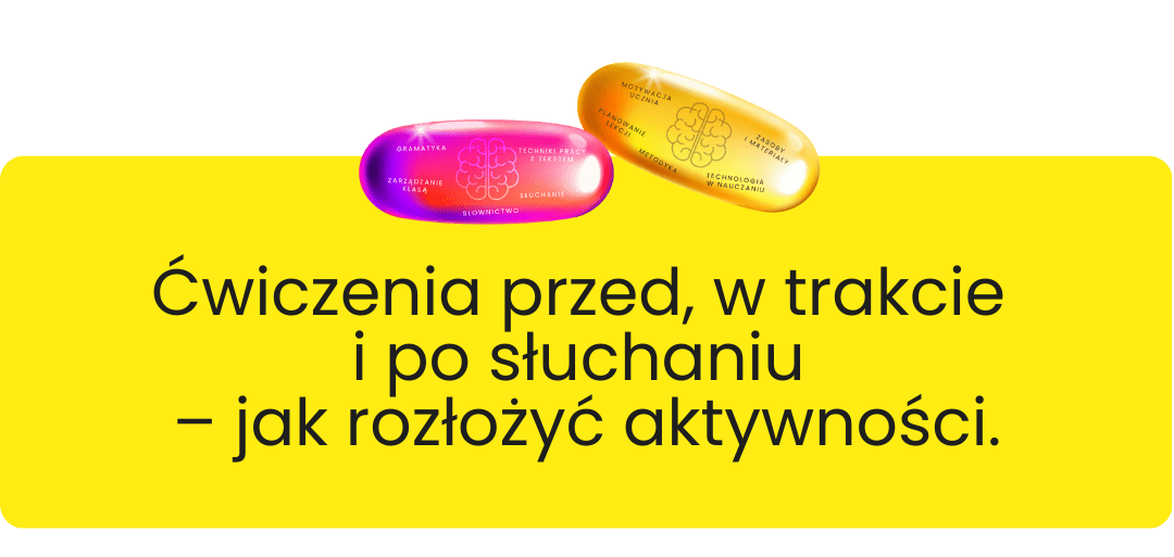 Omówimy techniki przygotowawcze, które pomogą uczniom lepiej zrozumieć tekst słuchany, zadania w trakcie słuchania ułatwiające koncentrację oraz działania po zakończeniu słuchania, które utrwalają i sprawdzają rozumienie.