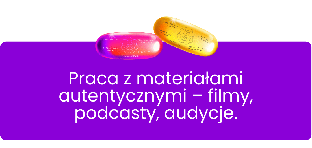 Nauka z wykorzystaniem autentycznych materiałów. Omówimy, jak dobierać filmy, podcasty, piosenki i inne treści, które przybliżają uczniom naturalny język oraz rozwijają umiejętność rozumienia akcentów i sytuacji życia codziennego.