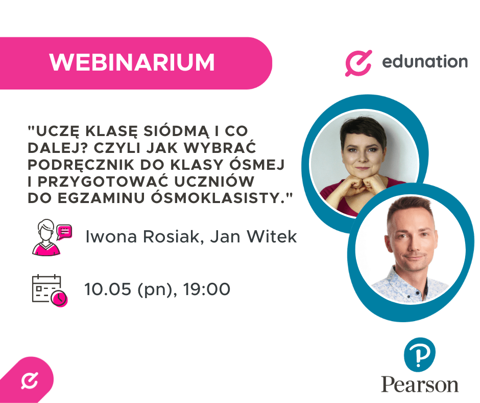 W imieniu naszego partnera Pearson Polska zapraszamy na trzecie z serii bezpłatnych poniedziałkowych webinariów!